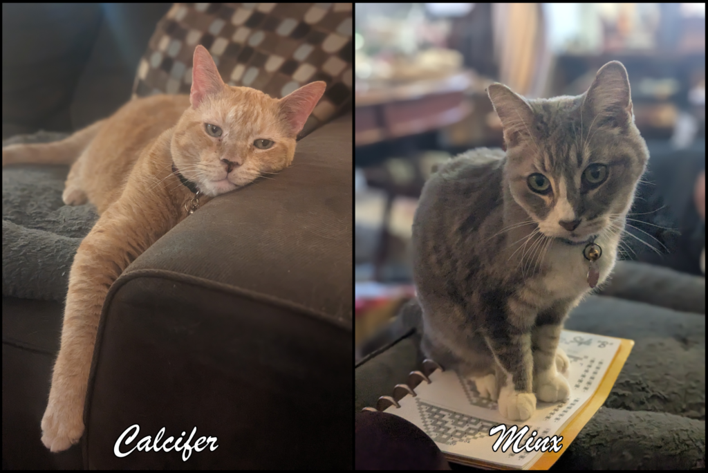 The absolute shittiest part of my year was losing not just my big dumb orange boy Calcifer in March, but then losing our sweet old lady Minx not two weeks ago. Cal had seemed off for a while, and was having trouble eating (this boy devoured everything in his damn path and then some, so this was our biggest warning sign). Turned out to be cancer, a lot of it. Minx was struggling with adjusting to our new kitten, but I also saw her losing weight and acting slightly out of character. Then the lethargy hit. Kidney disease (on top of so many other issues they found out about too late), that rapidly descended into kidney failure. To say our hearts were broken is a gross understatement. It was a miserable start to the holidays for our house, made only tolerable by the incredible kindness and love from friends and family.